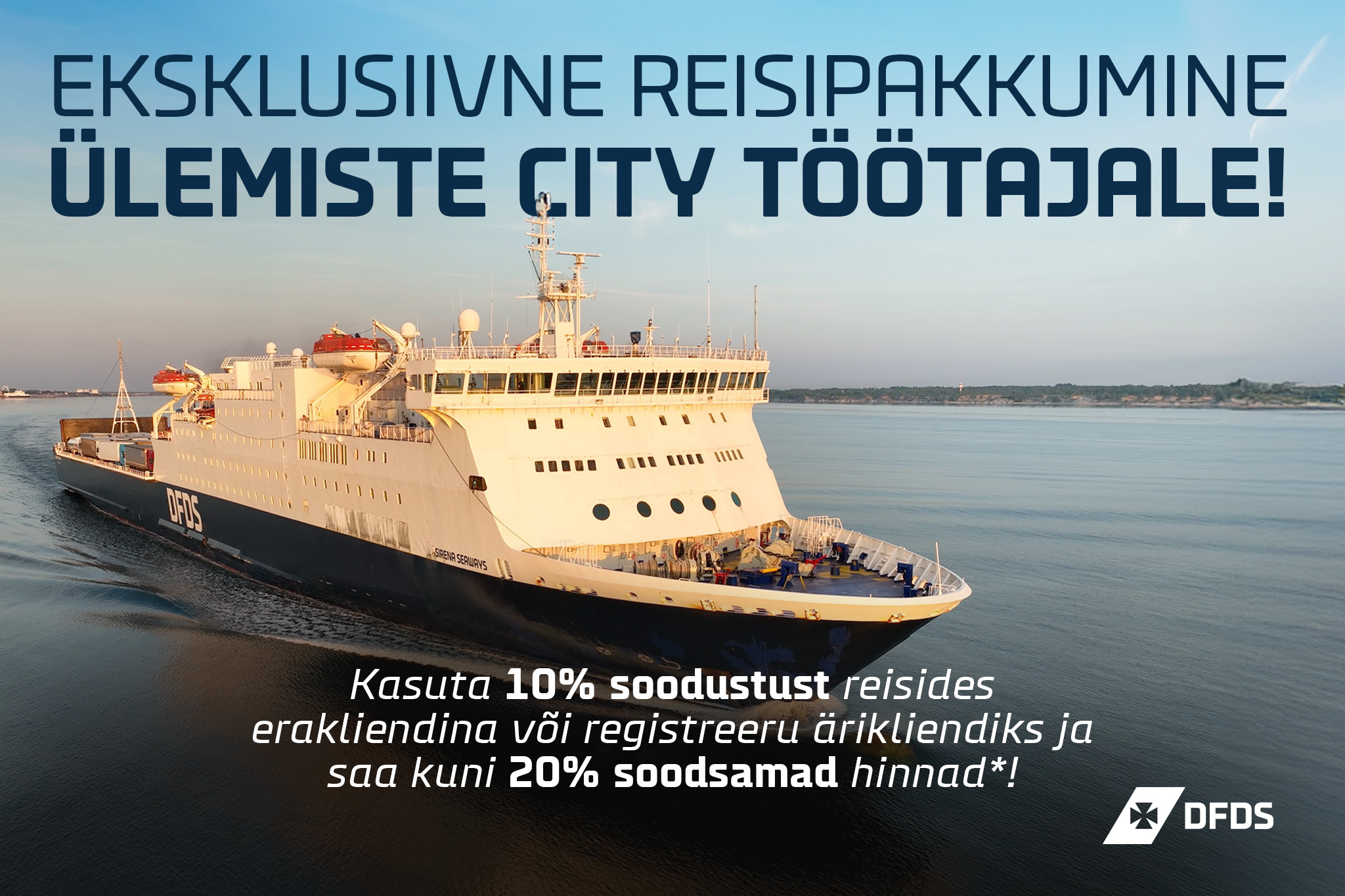 DFDS Paldiski-Kapellskär liini eripakkumine Ülemiste City töötajale! Kasutades broneerimisel sooduskoodi B2B10UC lisandub soodustus 10% nii kajuti kui sõiduki hindadele (kehtib sõiduautodele kõrgusega kuni 2,7m ja pikkusega kuni 7m, mootorratastele ja jalgrastele).