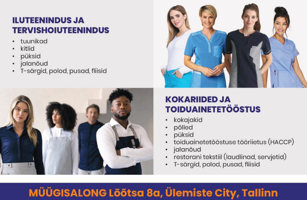 Smiletex pakub Eesti suurimat valikut isikupäraseid AMETIRIIDEID HoReCa ja TERVISHOIU töötajatele, ettevõtetele ESINDUSRÕIVAID ning TÖÖJALATSEID. Lisaks leiad Smiletexi laiast valikust kvaliteetseid ja erineva hinnaklassiga värviküllaseid T-särke, polosid, pusasid ja fliise, mis sobivad nii tööks, vaba aja veetmiseks, firmakingitusteks kui ka kampaaniaüritusteks!