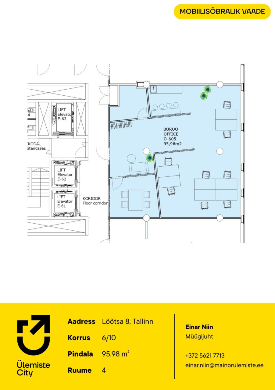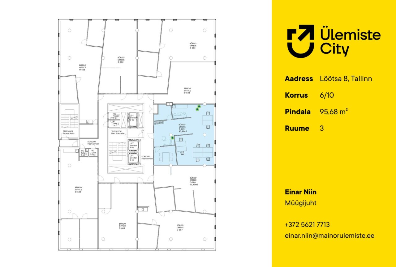 Üürile anda avatud planeeringuga valgusküllane kaasaegne büroopind Lõõtsa 8 hoone 6.korruselt. Hoones on olemas kõik vajalikud mugavused ja kaasaegsed lahendused.