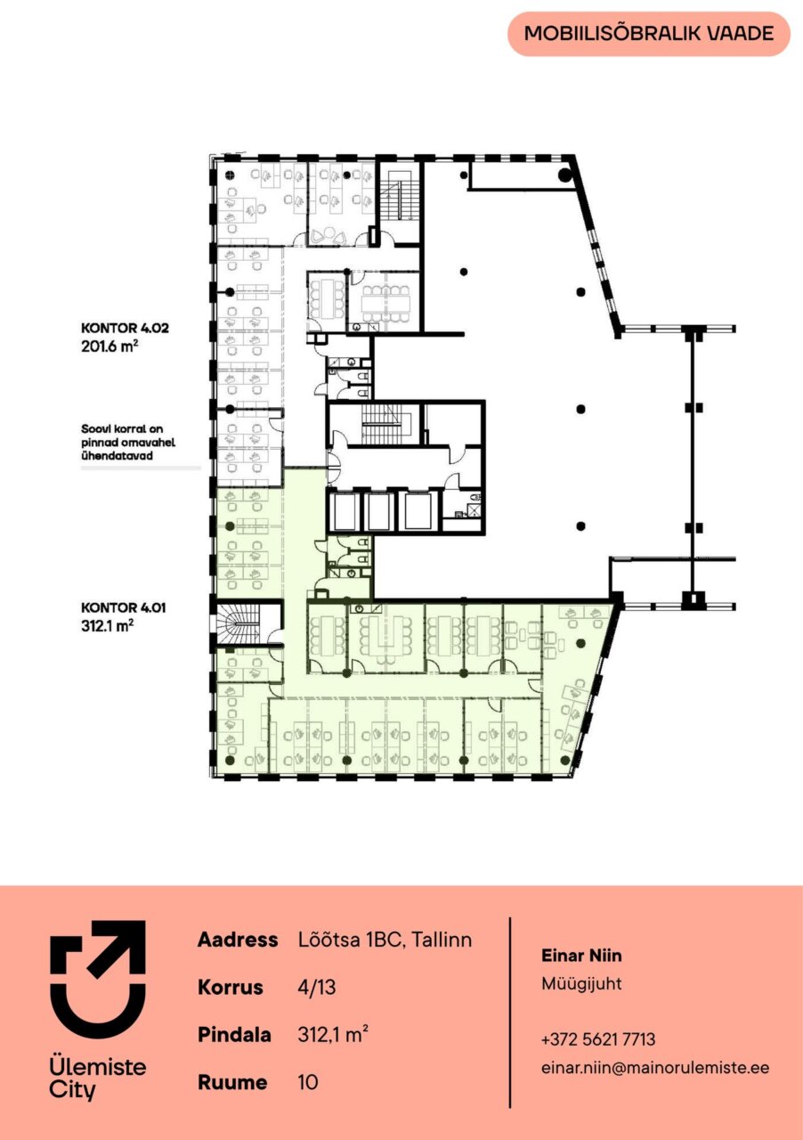 Üürile anda valgusküllane ja funktsionaalne büroopind Ülemiste City südames.