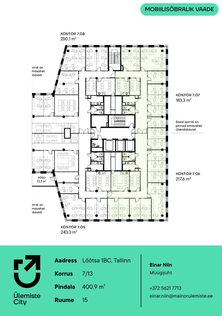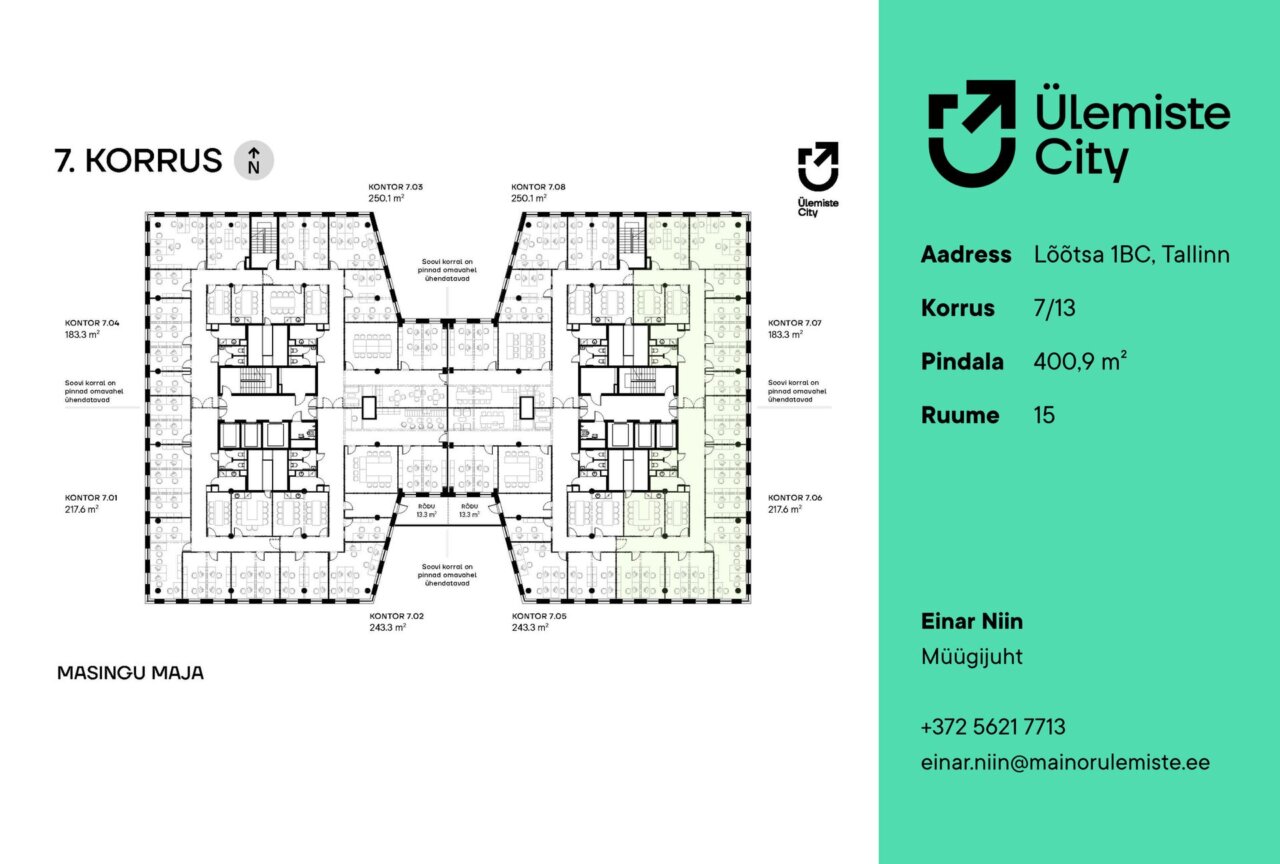 Büroopind asub Masingu maja B-torni 7. korrusel, millelt avanevad eksklusiivsed ja inspireerivad vaated Ülemiste Cityle ja Ülemiste järvele.