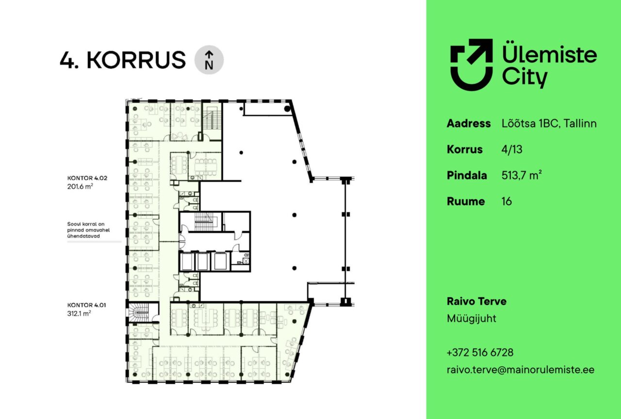 513.70 m2 8732.9 € (+km) 17.00 € /m2 4 korrus