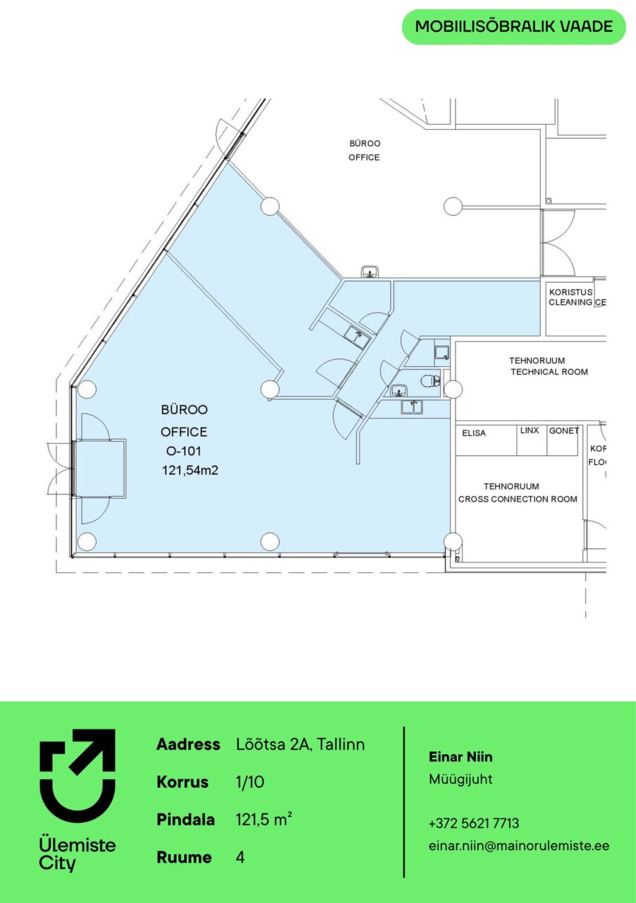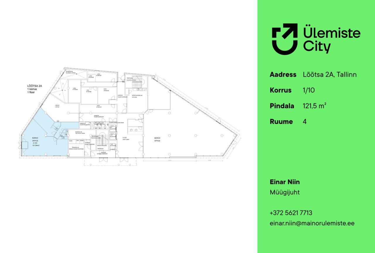 Üürile anda värskelt renoeeritud esimesel korrusel suurepärase nähtavusega kaubandus-, teenindus- ja/või büroopind Ülemiste Citys Puusepa A majas. Pinna kolmele küljele jäävad suured vitriinaknad. Pinnale on eraldi sissepääs tänavalt.