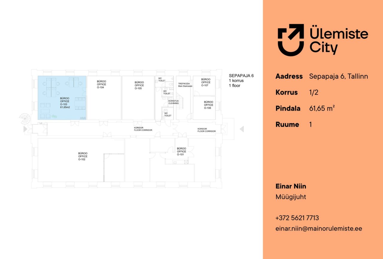 61.70 m2 893.93 € (+km) 14.49 € /m2 1 korrus